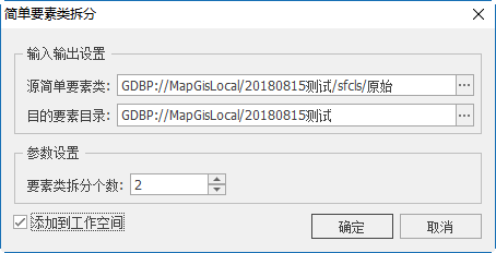 【添加到工作空间】:勾选后拆分后的简单要素类自动添加到场景视图。