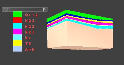 - 在“模型属性字段”设置中选择面或体图元的某个属性字段作为图例的说明文本,点击"确定"按钮系统自动在场景视图的左上角生成图例,样式如下: