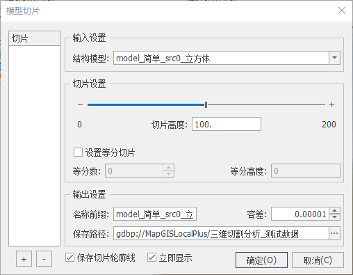 “模型切片”命令,弹出如下所示对话框: