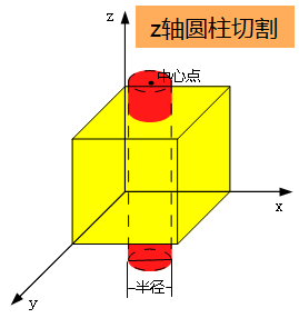 - 【切割轴】:设置圆柱体的中心轴线方向。通过“X/Y/Z轴”调整圆柱体的方向;