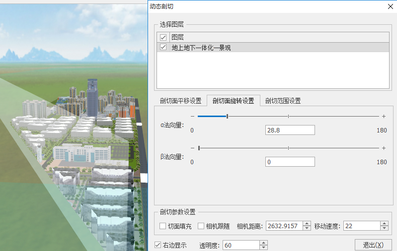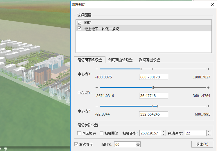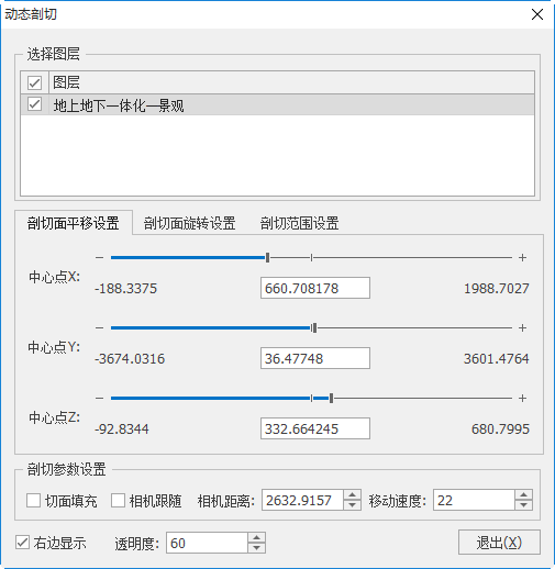 - 【图层】:勾选的图层,可进行动态剖切操作且场景中实时显示。