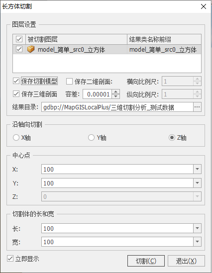- 【立即显示】:勾选“立即显示”,切割结果会直接显示在场景视图中,反之,则不显示。