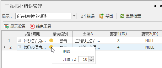 本功能用于检查三维点/线/面/体的空间位置关系,根据拓扑规则条件,检索出不符合条件的三维点/线/面/体数据。