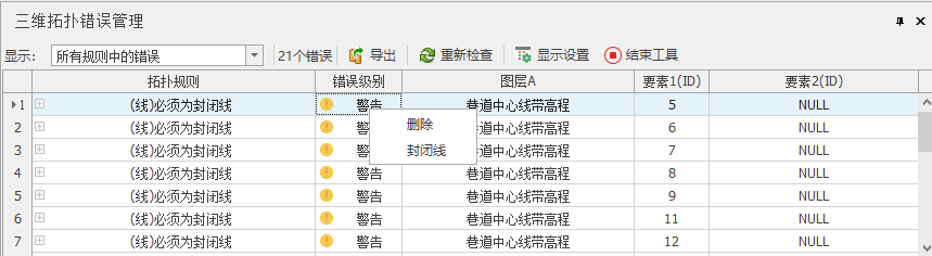 “删除”:在“拓扑错误管理”列表中,右键“删除”,可将不封闭体删除。