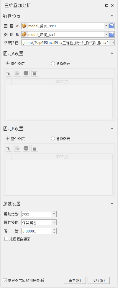 - 用户可勾选“结果图层添加到场景中”,点击"执行"进行叠加操作。