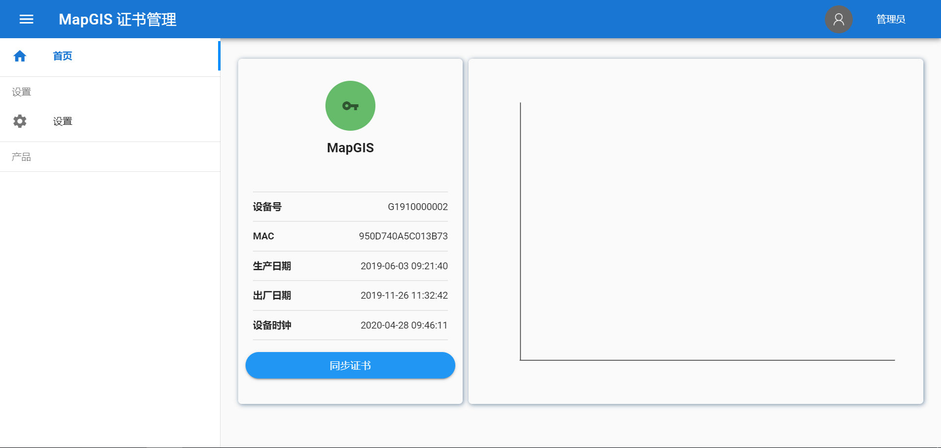 4. 点击MapGIS证书管理左侧按钮,点击设置按钮,进入设置主界面,点击【上传证书文件按钮】,弹出窗口,选择下载的硬狗授权文件,即可加载产品授权信息。