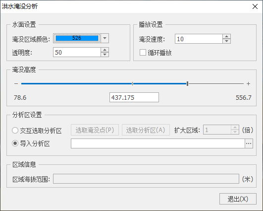 - 【淹没速度】:用户可以设置洪水淹没动画的播放速率。