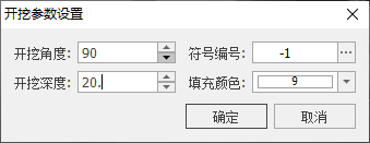 - 【开挖坡度】:设置地形开挖时候的角度选择,默认一般为垂直 “90”度。
