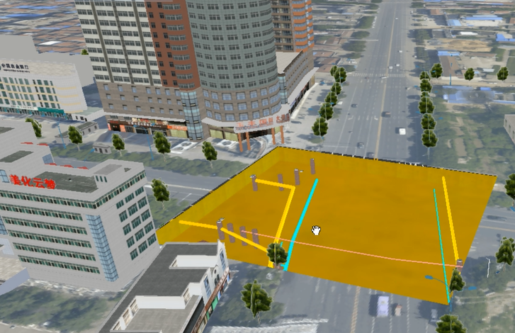 - 【多边形量测】:在地形表面持续点击鼠标左键绘制多边形区域,该区域即为量测范围。