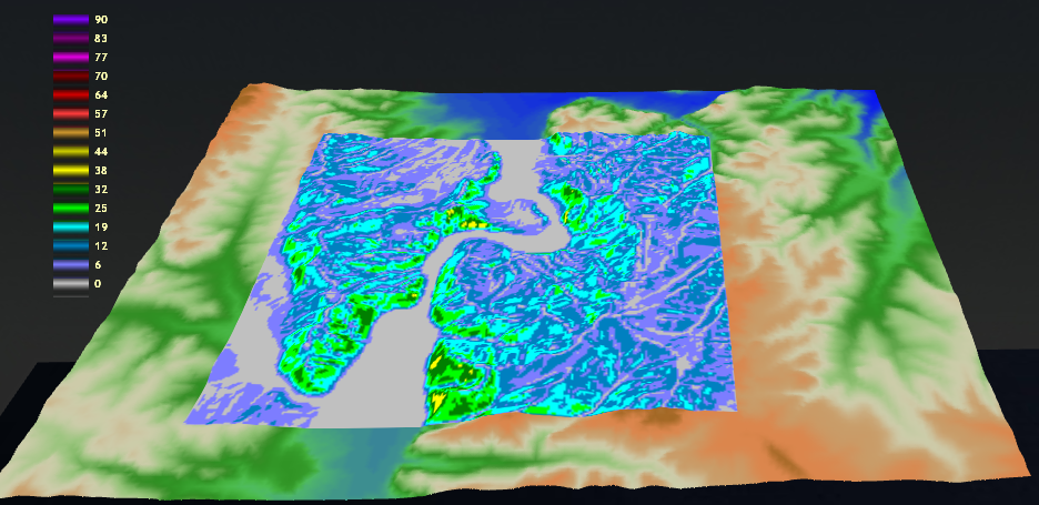 3. 平台将自动计算出该区域的地形坡度值,并显示相应的坡度色表图。效果如下: