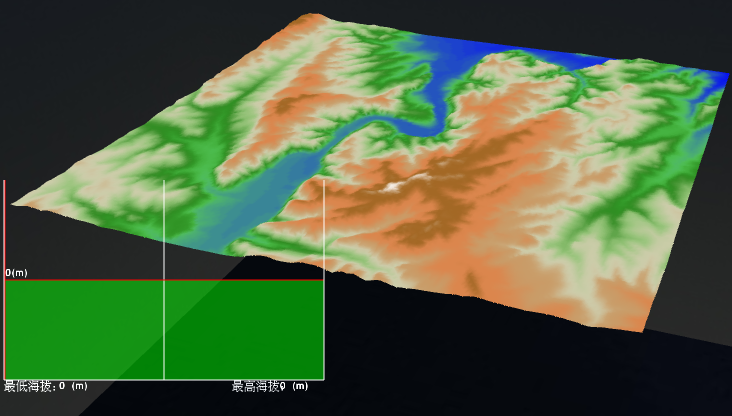 - 【指定淹没高度】:设置洪水淹没的高度值,地形高度值低于此参数的部分属于淹没区域。