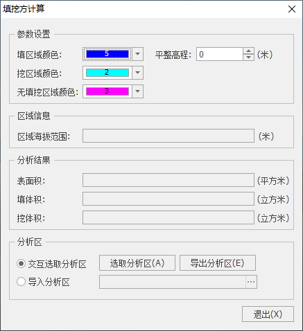1. 点击“分析”工具条上“填挖方计算”命令,弹出如下图所示对话框: