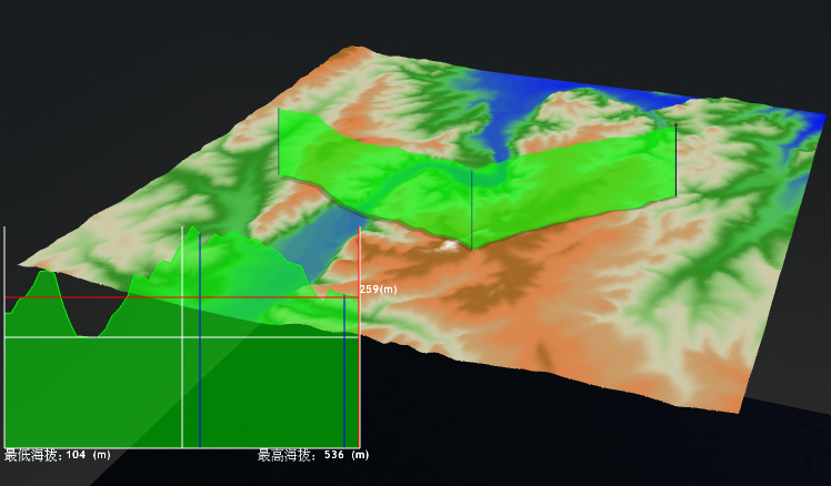 地形剖切分析提供了对地形上某一剖面的分析功能。