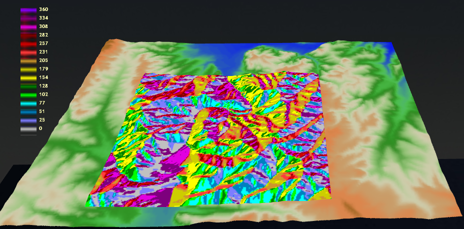 3. 平台将自动计算出该区域的地形坡向值,并显示相应的坡向色表图。效果如下: