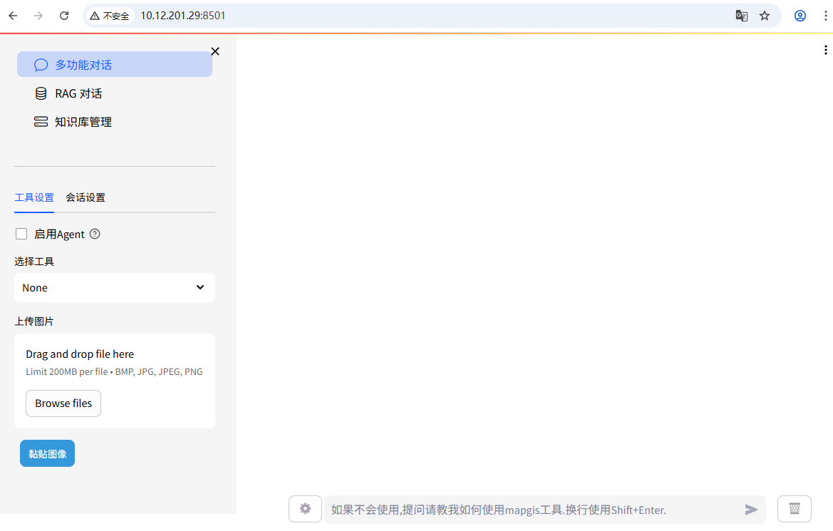 3. 双击启动"安装目录/bin"目录下的"start-chatchat-server.bat"脚本,成功后在浏览器输入 http://IP:8501,可访问如下界面: