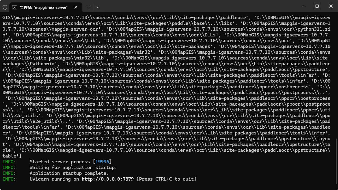 1. 双击启动"安装目录/bin"目录下的"start-mapgis-ocr-server.bat"脚本,会弹出启动命令框: