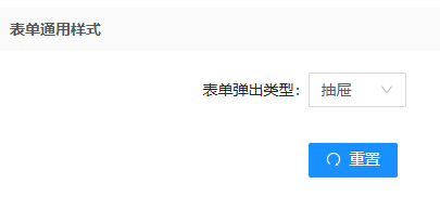 4. 在表单通用样式模块中可以修改表单(如点击新增弹出的表单)样式,设置为对话框类型则表单以对话框形式弹出,设置为抽屉类型则表单从界面右侧以抽屉形式弹出。