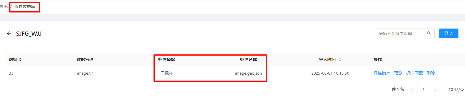 5. 标准匹配成功后,在列表中点击“查看数据集”页面会提示“已标注”信息,反之,会提示“未标准”。