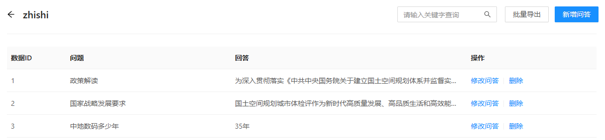 9. 点击列表后方的"删除",可删除该知识问答数据集。