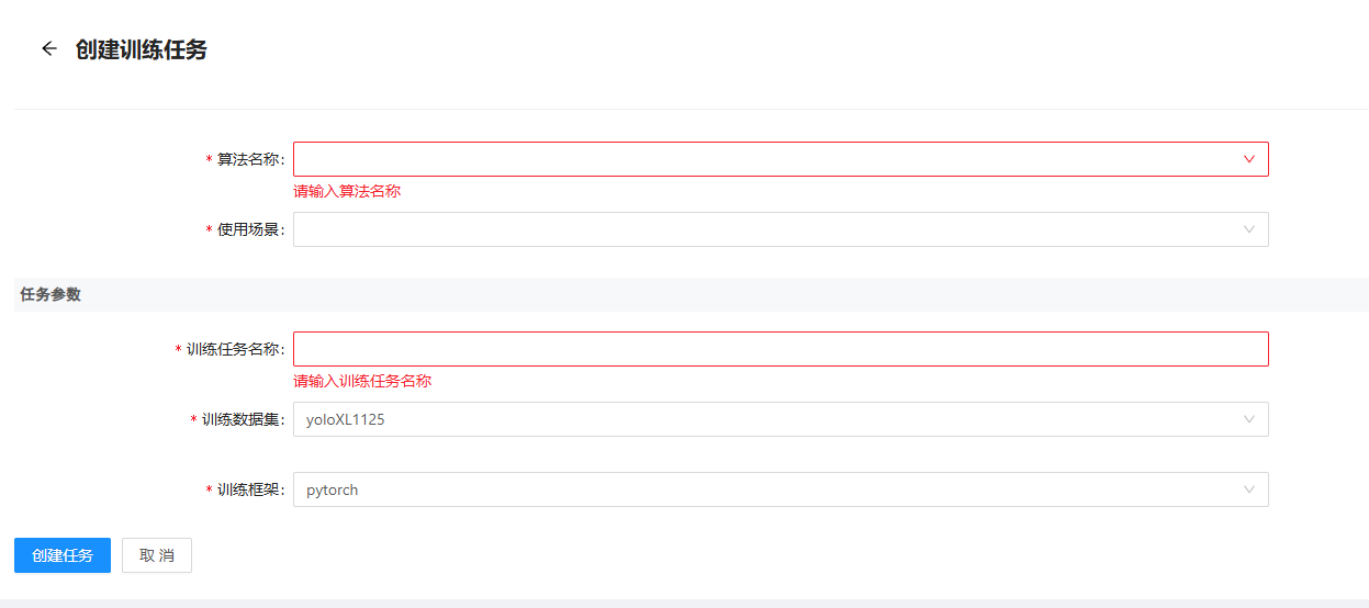 【训练框架】:默认选择pytorch即可;