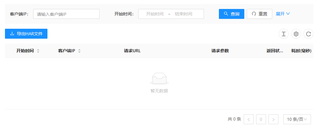 1. 切换到"日志管理"->"服务访问日志"页面,即可展示服务访问的日志信息: