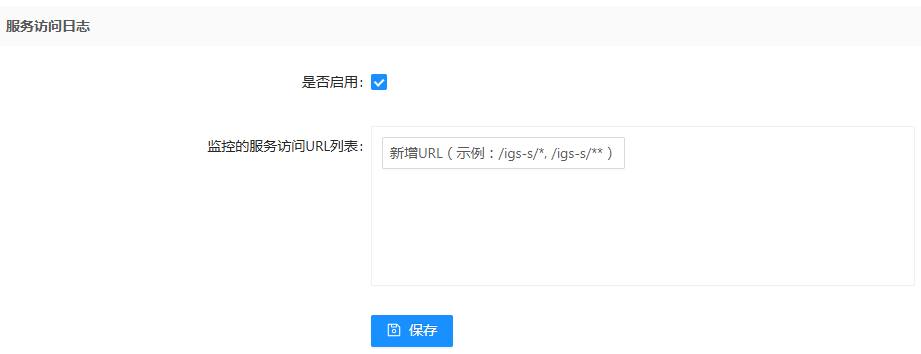 设置是否启用服务访问日志并设置监控的服务访问URL,如默认设置/manager/**,则表示通过该URL路径访问信息会展示在"服务访问日志"中。