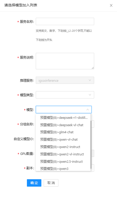 【服务类型】:支持 igssxinference和OpenAI 两种类型;