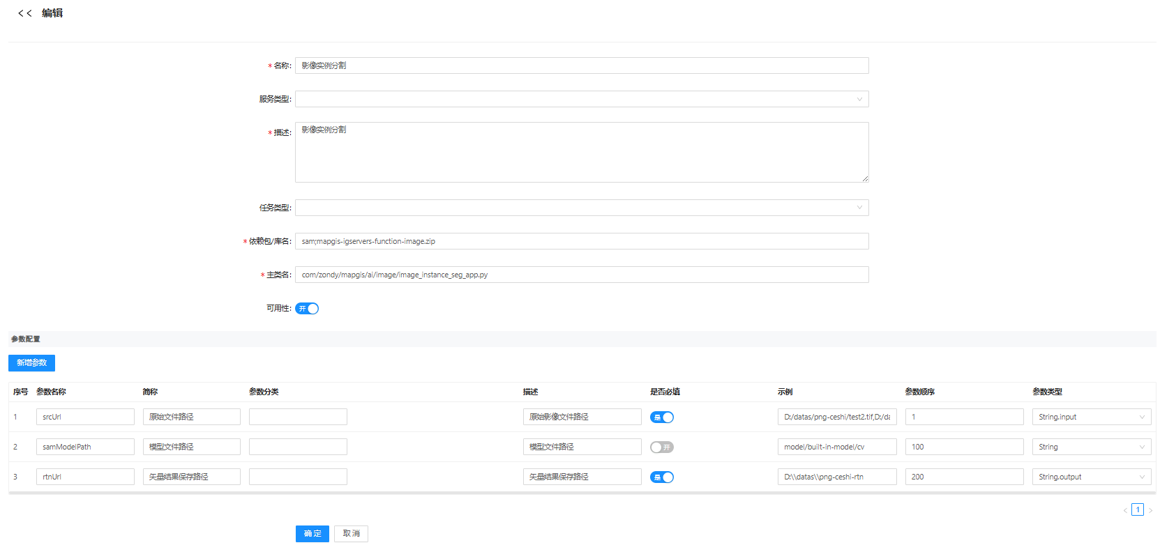 2. 点击"影像实例分割"后方的"编辑",可修改功能服务信息: