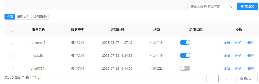 1. 登录系统,切换到"模型服务"->"模型推理"页面,列表中可显示所有已发布模型服务: