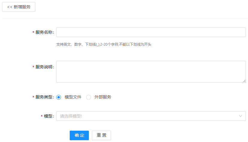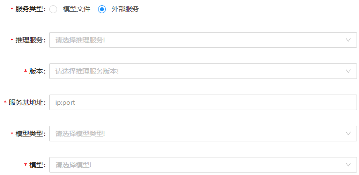 - 【服务类型】:可支持模型文件和外部服务两种类型: