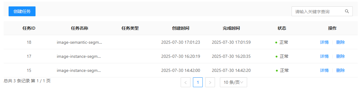 3. 点击"影像实例分割"后方的"创建任务",可执行功能操作。