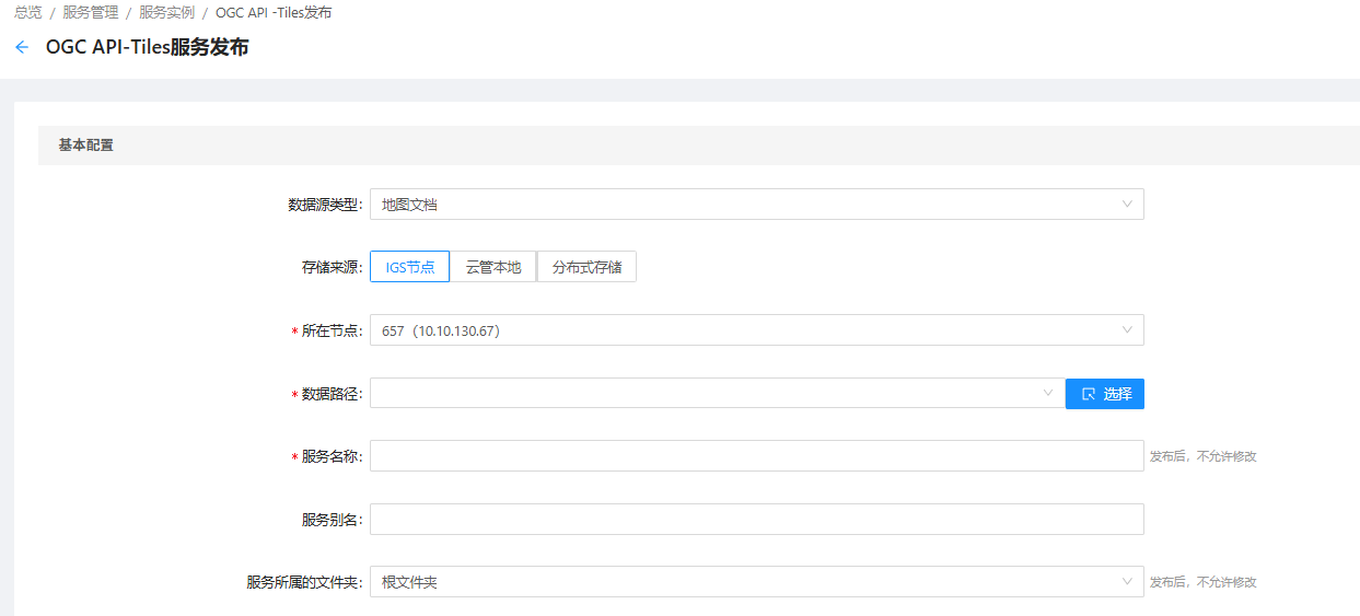 3. 设置完基本信息参数点击"发布服务"按钮,发布当前OGC API -Tiles服务。