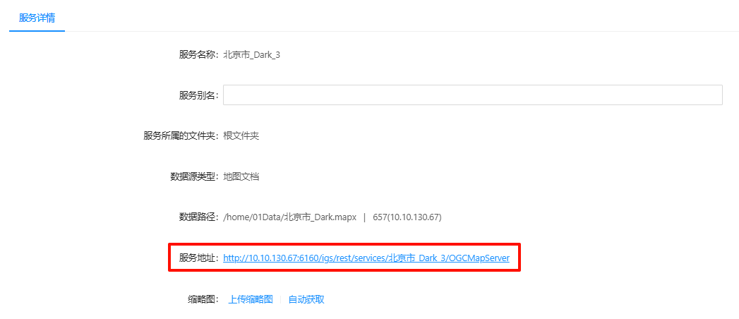 2. 发布WMS服务成功后,点击进入服务详情页面,点击WMS服务的"服务地址",可进入查看WMS服务基地址页面。