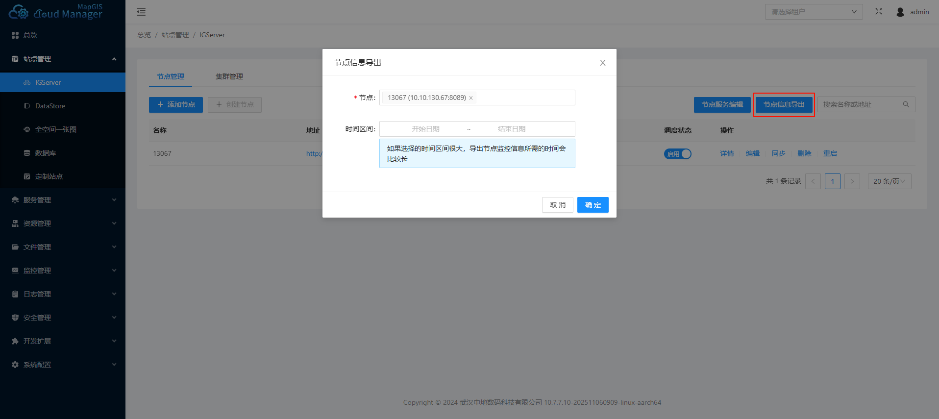 1、点击"站点管理"->"IGServer",切换到"节点管理"页面。