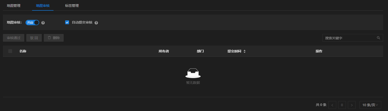 2. 切换到"资源管理"->"地图管理"->"地图审核"页面,此处罗列的登录用户可审核的地图资源;
