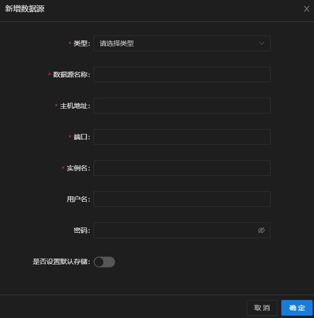- 【是否设置默认存储】:设置为“是”,将GeoJson、Shapefile、CSV、Excel 地理空间数据资源发布为服务时,会将数据导入存储到此数据源中;