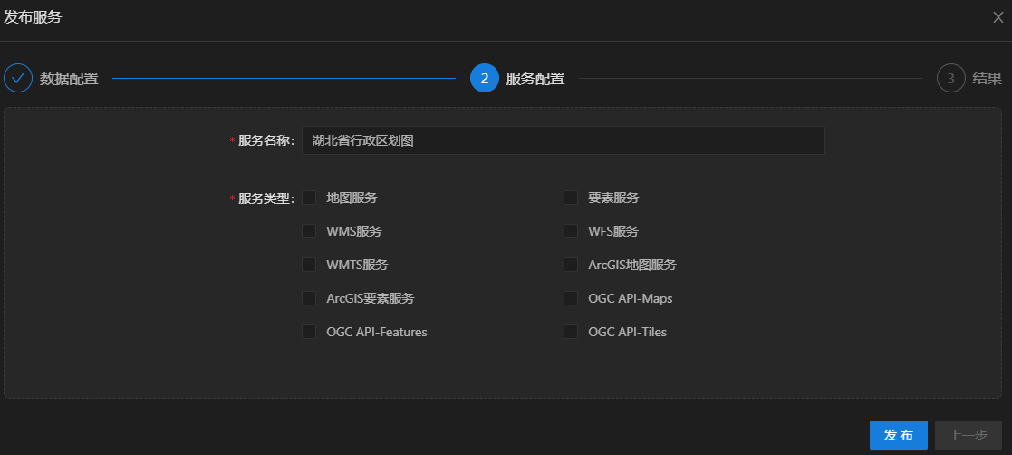 通过审核或无需审核的数据可以发布为服务,点击"发布"按钮,参考"数据资源";