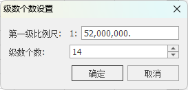 - 默认:会弹出"级数个数设置"对话框,用户可以设置第一级比例尺及级数个数,系统会自动按照2倍关系计算比例尺。如下图所示: