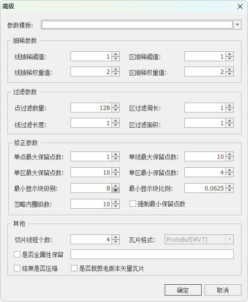 - 【结果是否压缩】:勾选时,可压缩结果矢量瓦片;