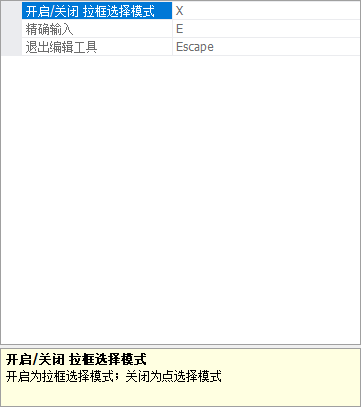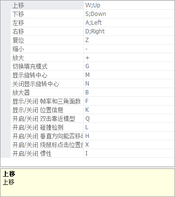此处罗列了三维场景中各功能及快捷键对应关系,目前仅供用户查看,不可进行编辑。