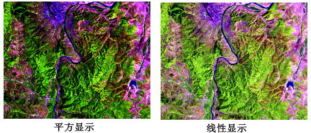 - 【平方显示】:用平方变换(对0.5%--99.5%的直方图数值范围)来显示当前活动窗口中的影像;