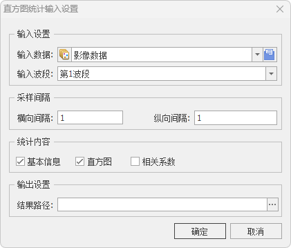 - 采样间隔指统计时采样像元间隔,默认为1,即所有像元值会参与统计。当栅格像元个数达百万个时,间隔为1时会导致统计耗时非常长,此时可适当将间隔增大。