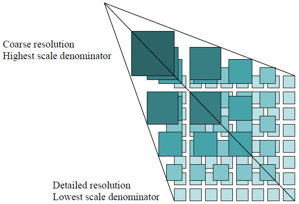 - 【地面分辨率】:地面分辨率是特定比例尺下,屏幕上一个像素代表的实地距离。