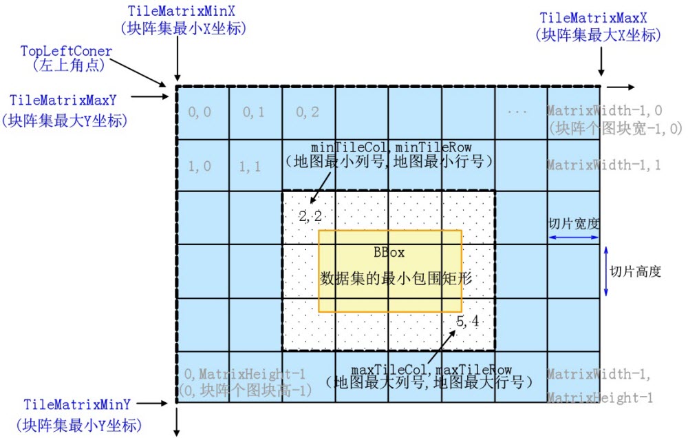 WMTS的切片坐标系统和其组织方式可参考下图: