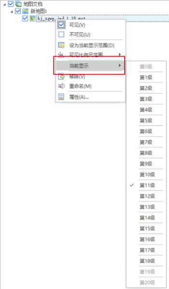 5. 添加瓦片服务后,在"右键功能面板"->"当前显示" 中,可快速切换当前显示级别。