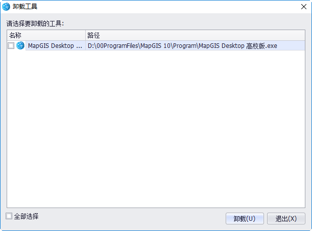 软件的卸载直接通过开始菜单,先点击卸载工具,再卸载MapGIS 10平台产品,卸载产品步骤按照向导即可。卸载完成后可以手动删除对应的日志文件,路径在“系统盘:\Program Files\Common Files\MapGIS 10”。