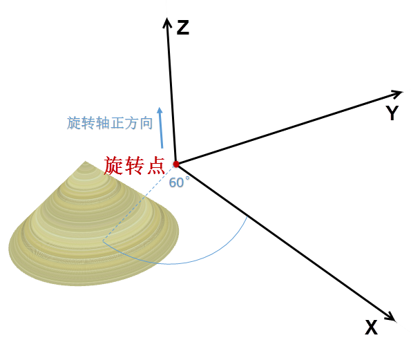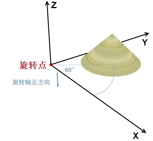 当旋转原点为(0,0,0),旋转轴为(0,0,-1),角度为60°时,旋转结果如下: