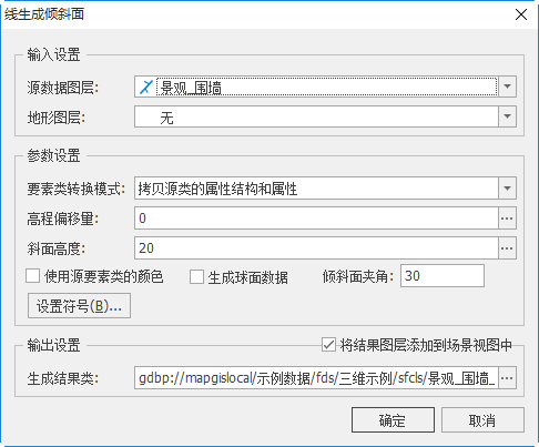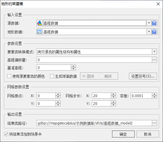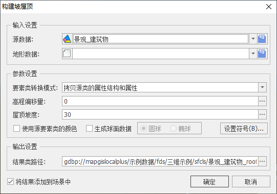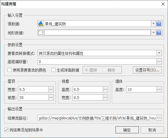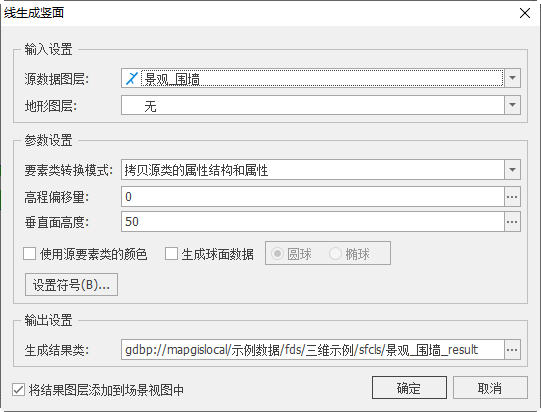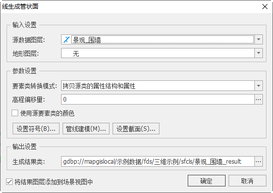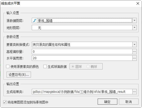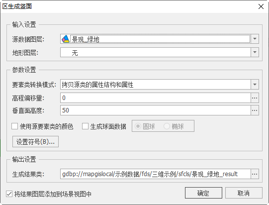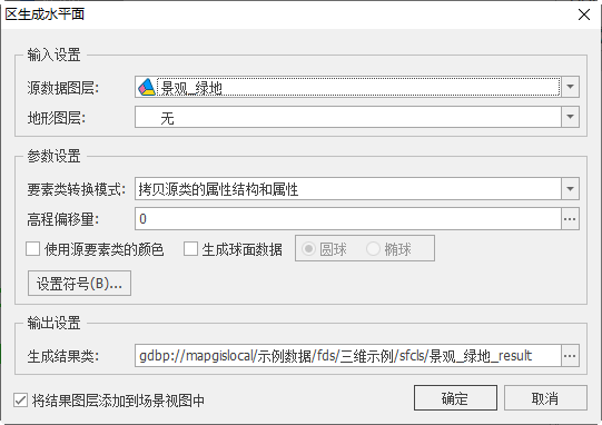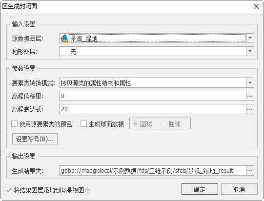 【将结果图层添加到场景视图中】:若勾选,面数据生成成功后将自动添加到场景视图中;