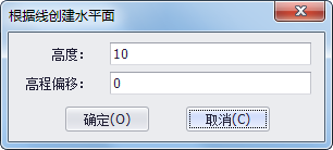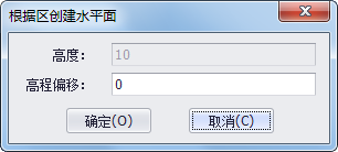 - 点击三维建模工具条上 “拾取区生成水平面”命令,选择该命令后,在场景内点击鼠标左键选中一个区,弹出下图所示对话框,“高程偏移”即将区在Z方向上偏移一定值后再生成面,设置完参数后点击"确定"按钮,系统自动生成水平面。