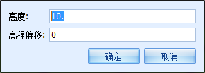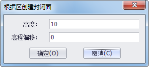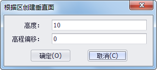 2. 点击三维建模工具条上 “拾取区生成封闭面”命令,选择该命令后,在场景内点击鼠标左键选中一个区,弹出下图所示对话框,“高度”即生成的封闭面的高,“高程偏移”即将区在Z方向上偏移一定值后再生成封闭面,设置完参数后点击"确定"按钮,系统自动生成封闭面。